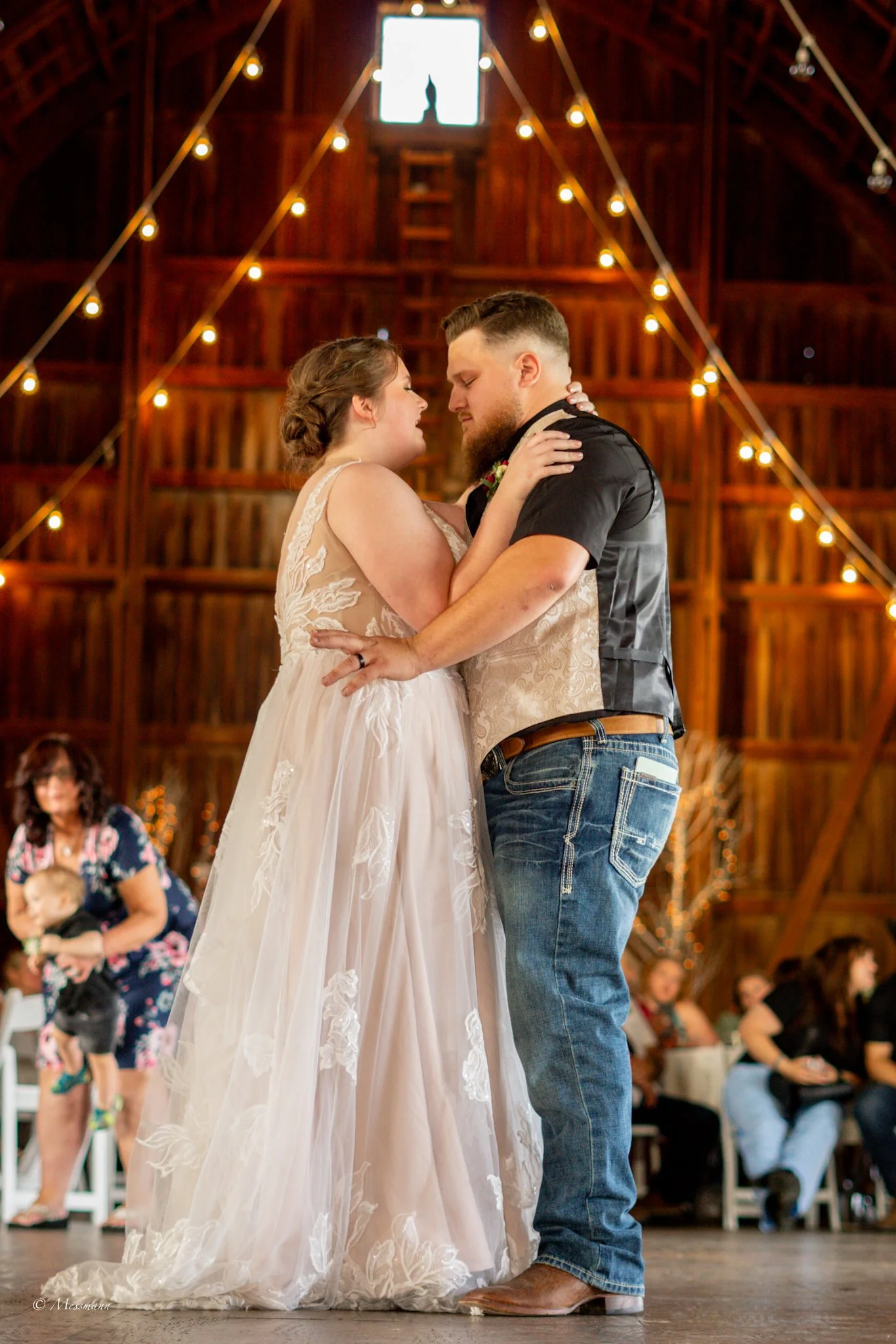 Their wedding day embraced a charming rustic theme, perfectly suited for their love story. Alexis carried a deeply meaningful something blue. A flower sewn under her dress, lovingly made from one of Chris’s shirts by a family member. The venue choice was easy; Alexis had attended a family wedding at The Hay Loft Barn years earlier, fell in love with its warmth and character, and knew it was the place for them. It was the first and only venue they toured, because it simply had everything they wanted.